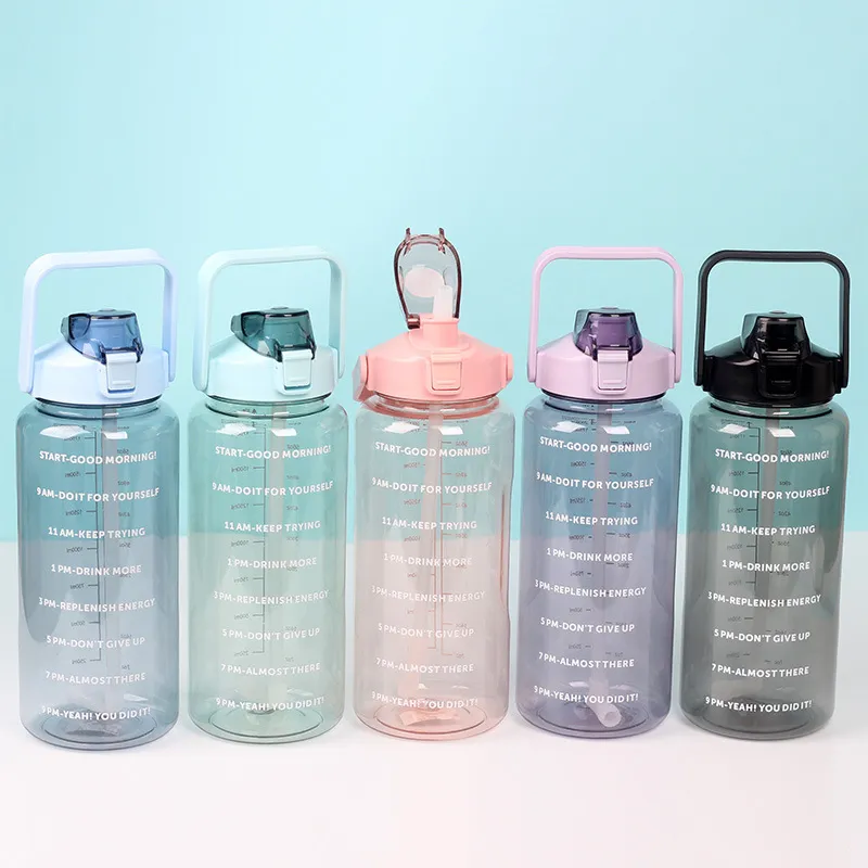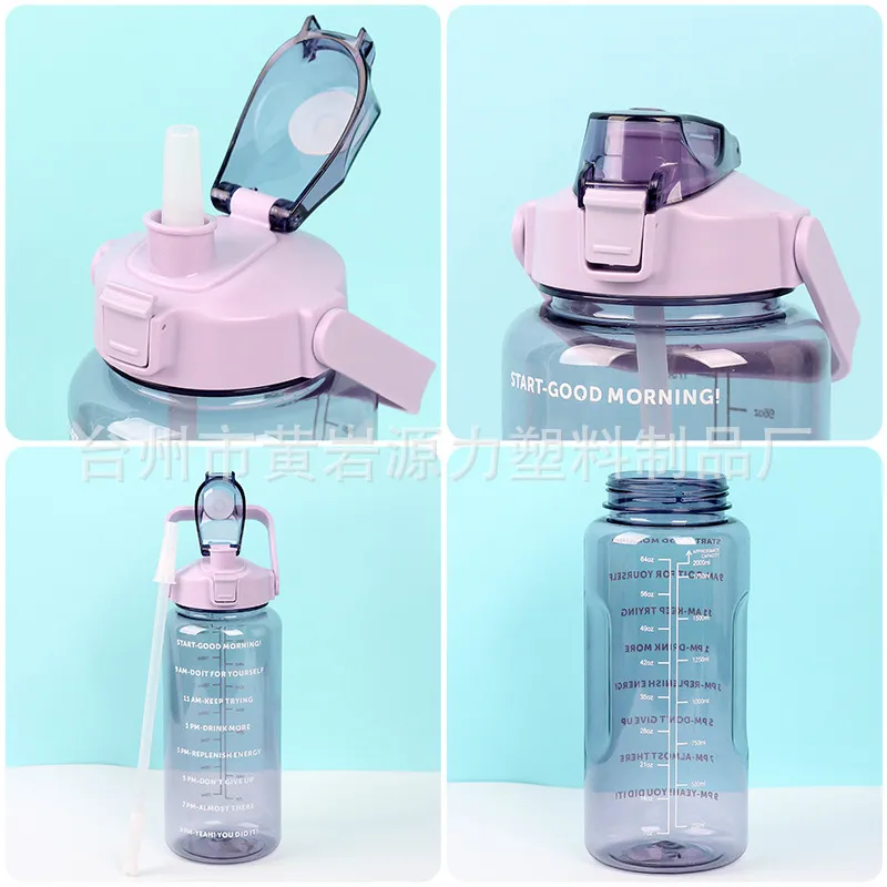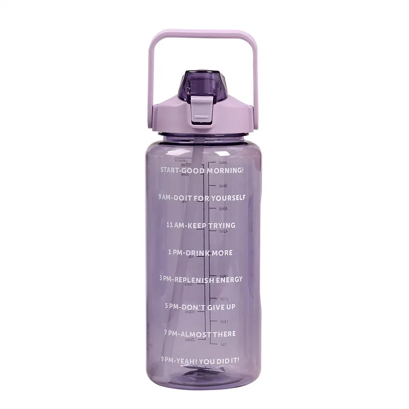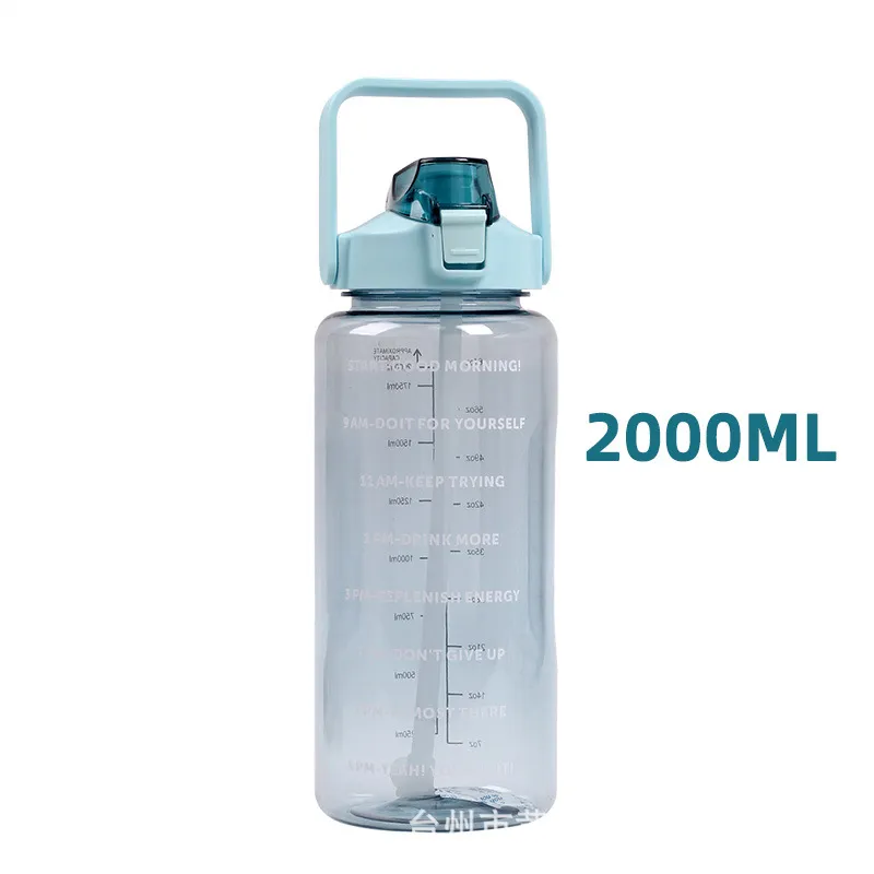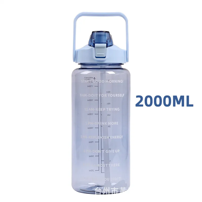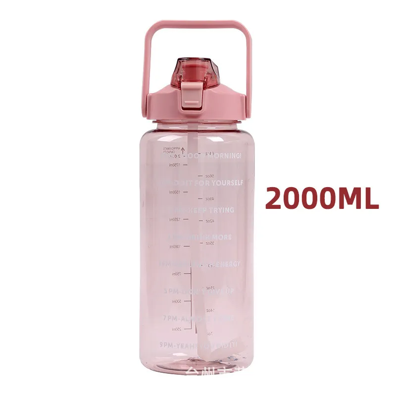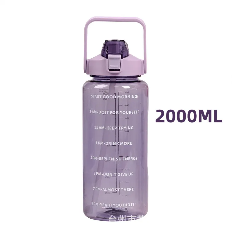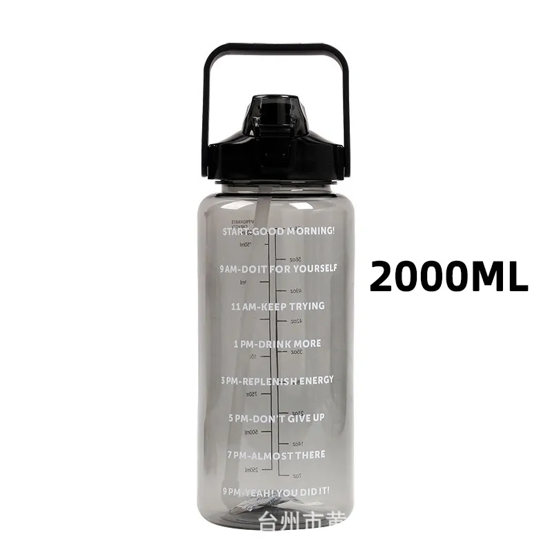 This 2000ml large-capacity water bottle is the ultimate hydration companion, designed to help you meet your daily water intake goals without constant refills. It features unique motivational quotes and time markers on the side, serving as a friendly reminder to stay hydrated throughout the day. The clear measurement scale allows you to track your consumption accurately. Despite its large volume, this "Space Cup" is designed to be lightweight and portable, making it perfect for the gym, office, hiking, or home use. Built with durable plastic and a leak-proof lid, it is ready for immediate wholesale distribution.
