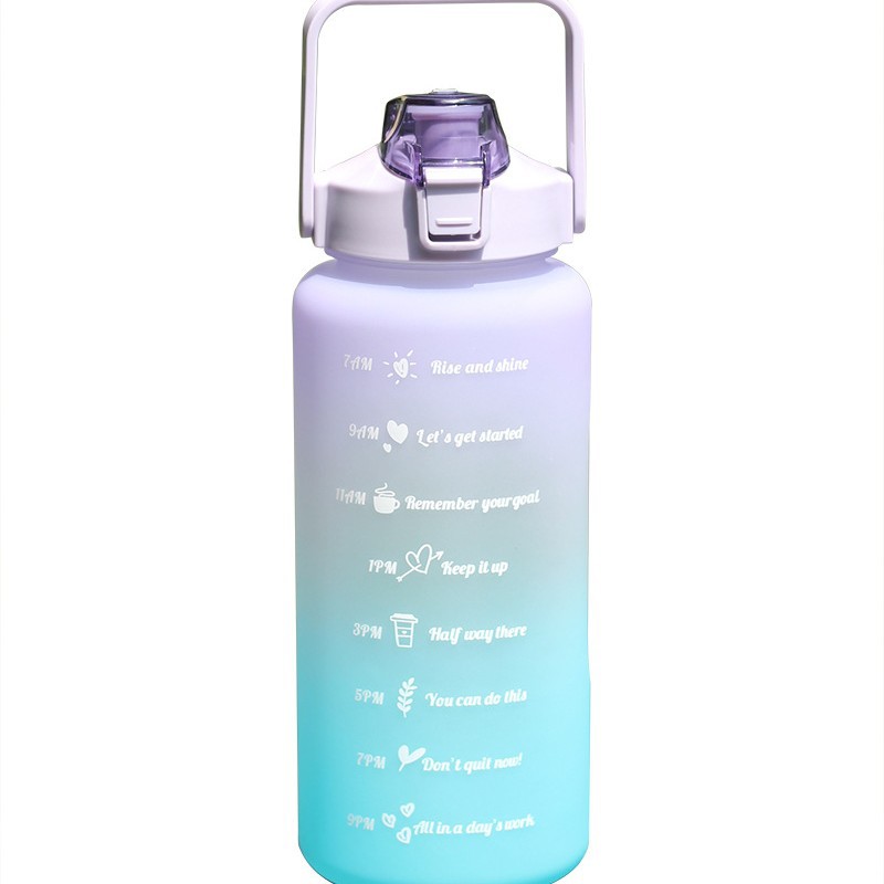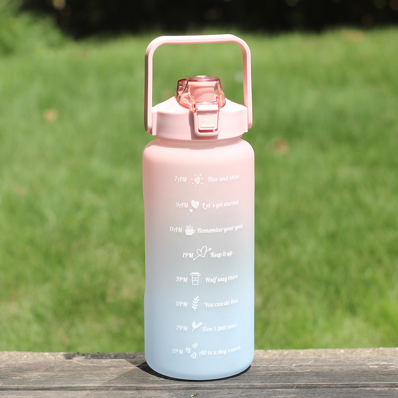 2L Gradient Time Marker Sports Water Bottle – Large Capacity Flip-Lid Straw Cup for Gym & Outdoor Use