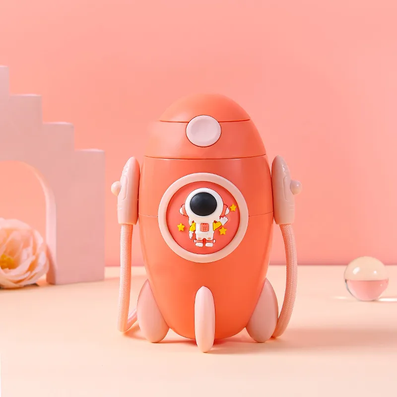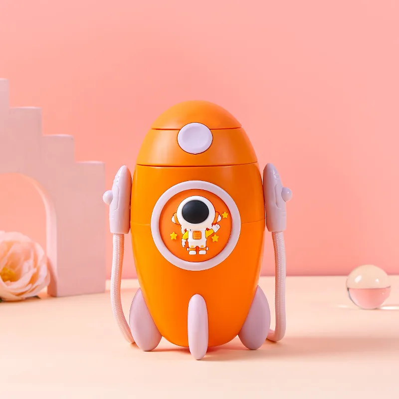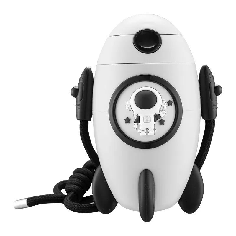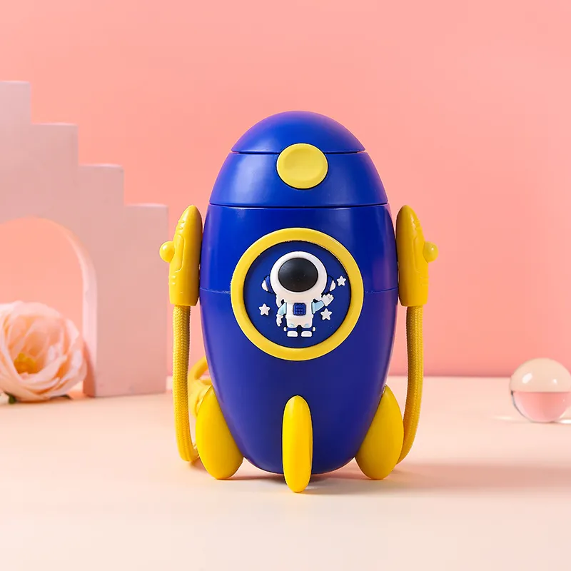 This adorable sports water bottle is designed to capture children's imaginations with its unique and playful rocket ship shape. Crafted from premium Tritan material, it ensures superior safety, being 100% BPA-free, odorless, and highly resistant to drops and impacts. The bottle features a soft silicone straw that protects delicate gums and makes drinking easy for young ones. Equipped with a convenient, adjustable carrying strap, it allows children to wear it comfortably like a crossbody bag or around their neck. Whether for school, picnics, or outdoor play, this bottle combines fun aesthetics with practical functionality to encourage kids to stay hydrated.