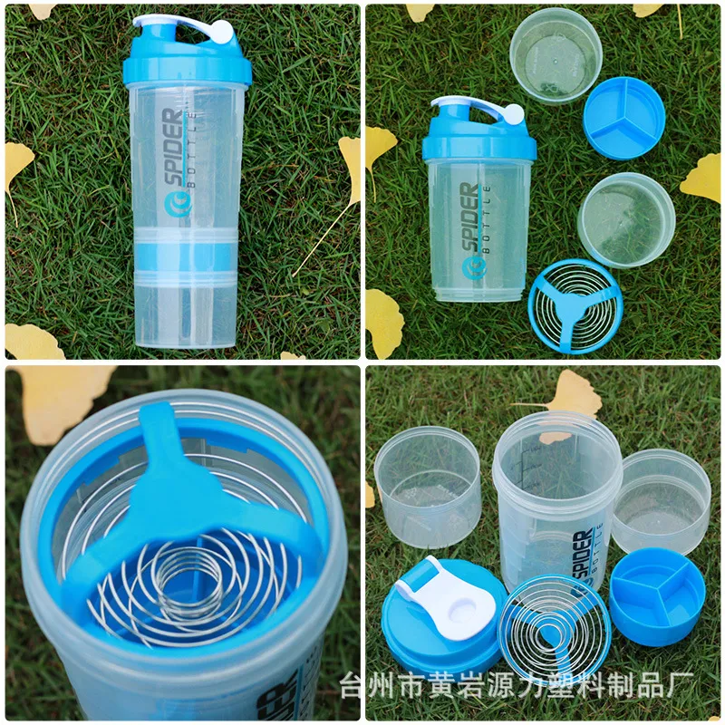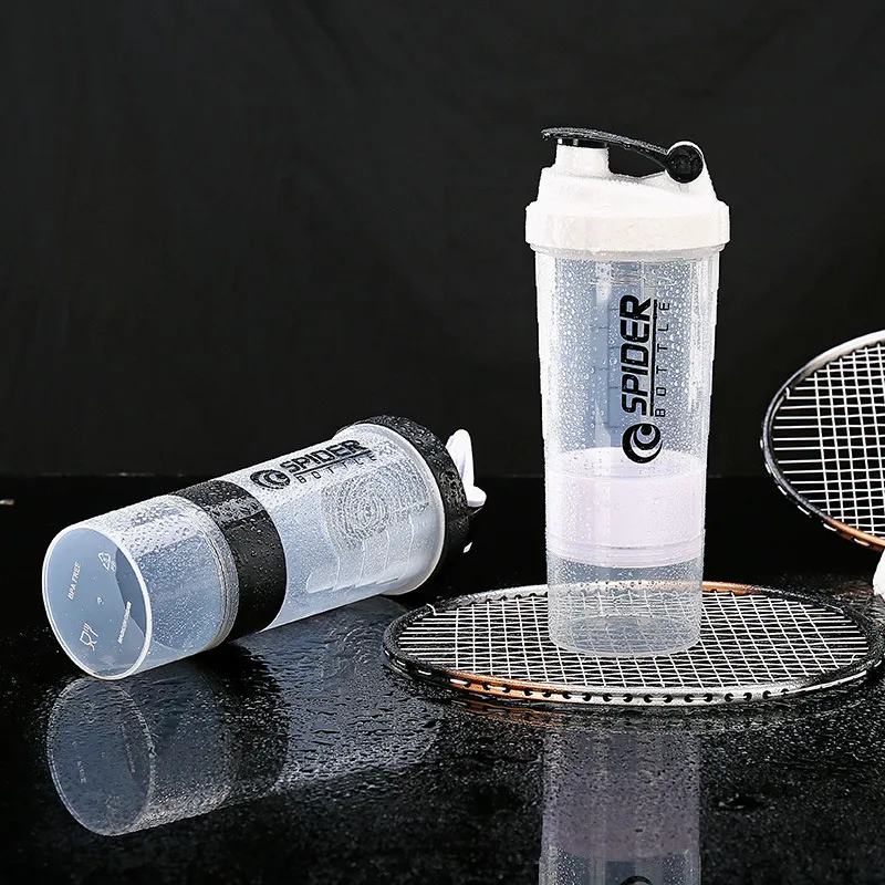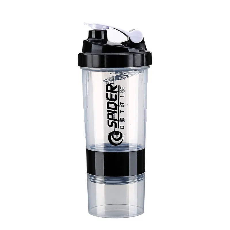Plastic Three-Layer Protein Shaker Bottle 550ML – Portable Fitness Shaker for Protein Powder, Supplements, and Daily Use