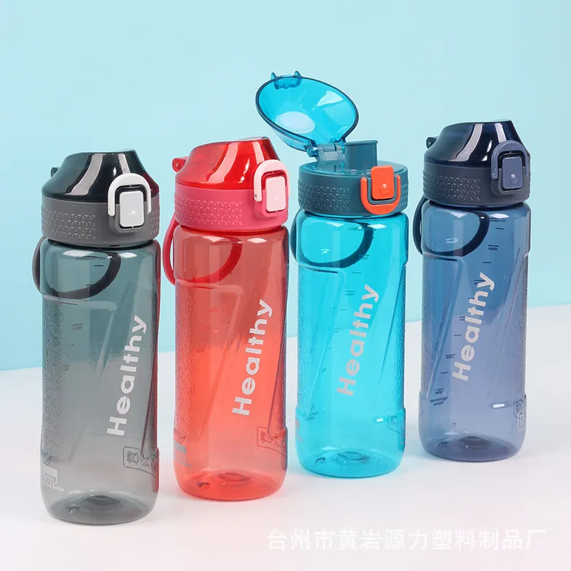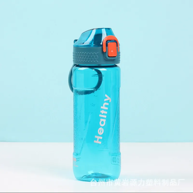 Designed for flexibility and wholesale distribution, this 600ml sports bottle adapts to various user preferences. It features a standard one-touch flip-top (bounce) lid that reveals a straight spout for easy direct drinking. A key selling point is its versatility: it can be optionally equipped with a tea filter (infuser) for making fruit tea or a detachable straw for convenient sipping, depending on your inventory needs. With a sturdy integrated handle and durable plastic construction, it is perfect for hiking, camping, and gym use.