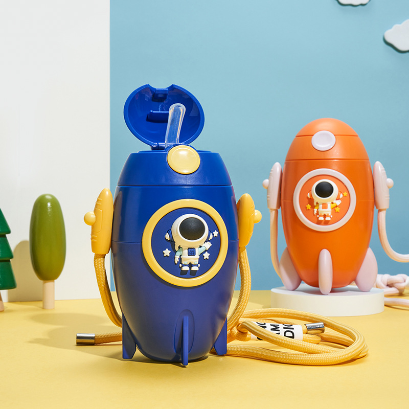 500ml Kids Rocket Water Bottle – Portable Space Cup with Straw and Shoulder Strap