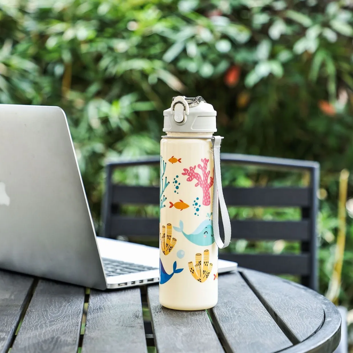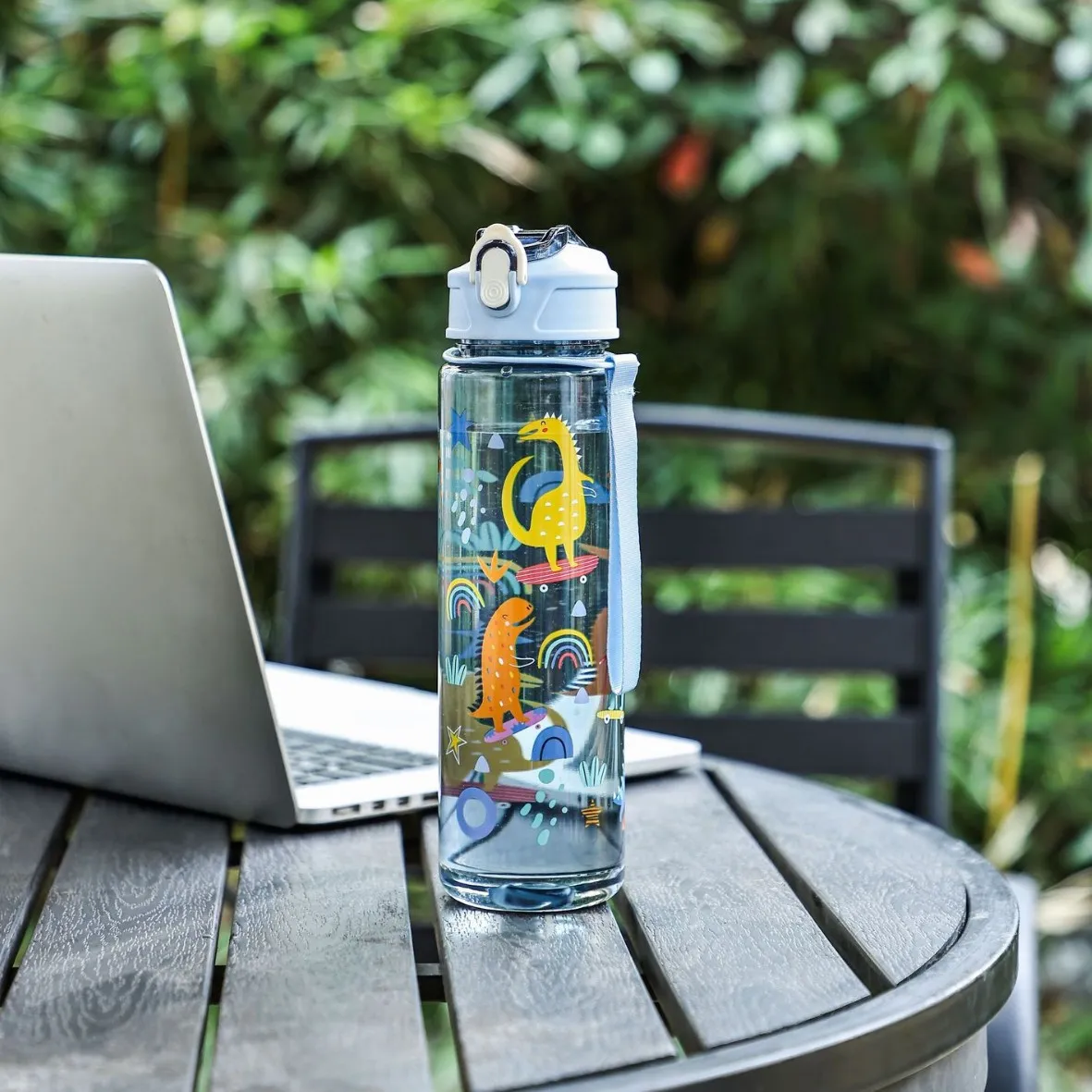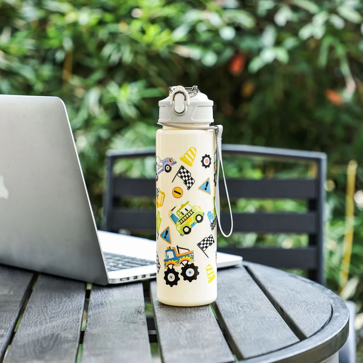 Flip-top lid with built-in straw for hygienic, easy drinking.