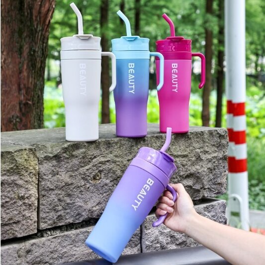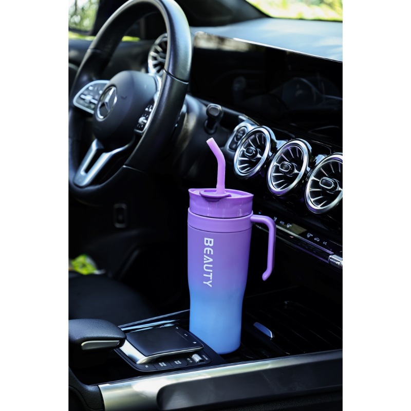 Enjoy your drinks in style wherever you go with this large-capacity gradient tumbler cup. Designed with a sturdy handle and built-in straw, it offers effortless drinking during workouts, outdoor trips, or long drives. The gradient color design gives it a fresh, modern look that matches both casual and sporty lifestyles.