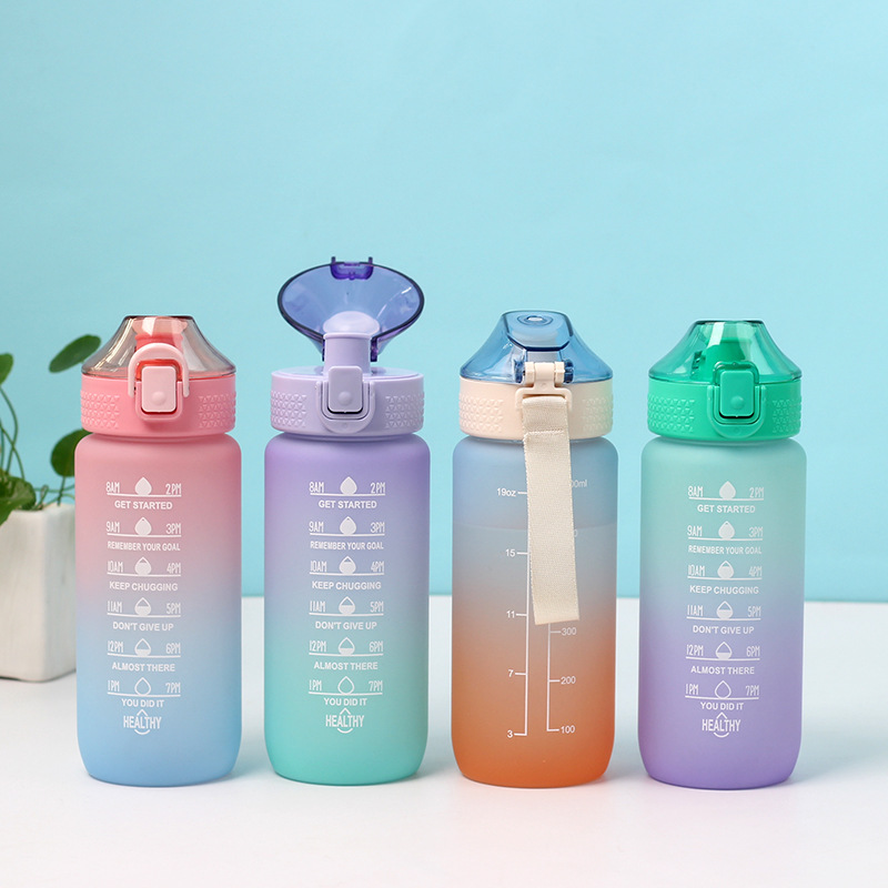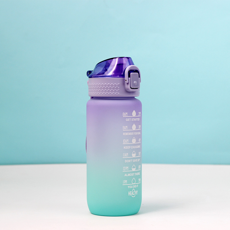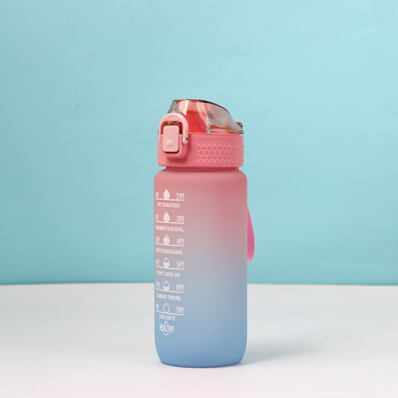 Gradient Sport Water Bottle 600ml – Portable Frosted Plastic Cup with Filter and Flip Lid