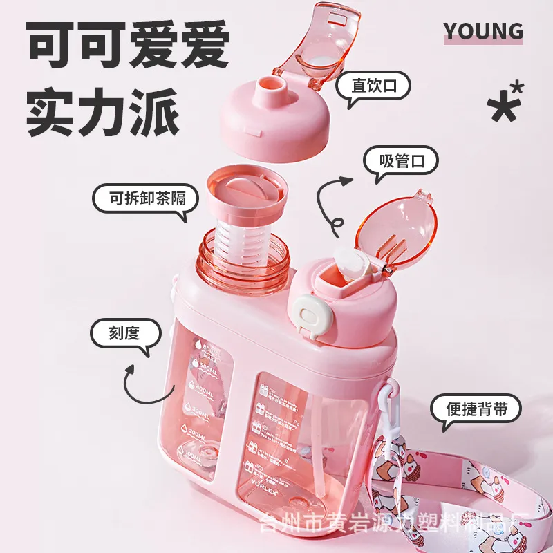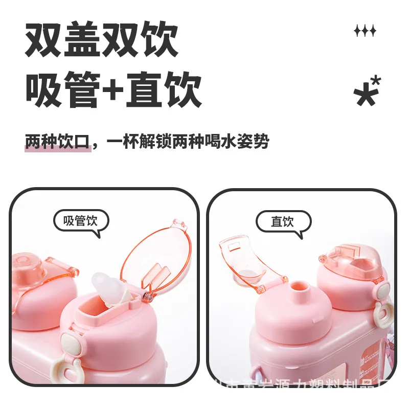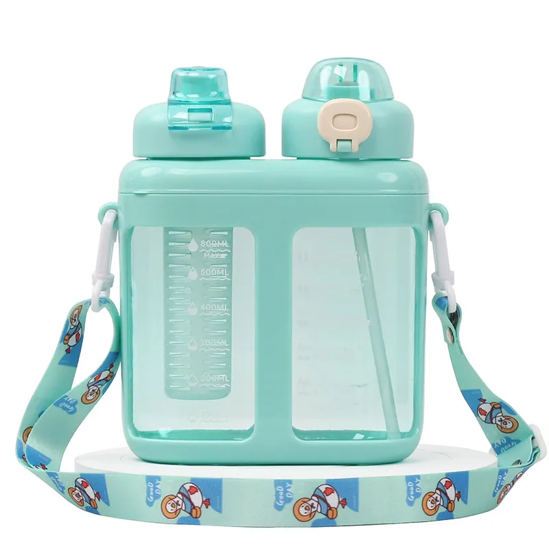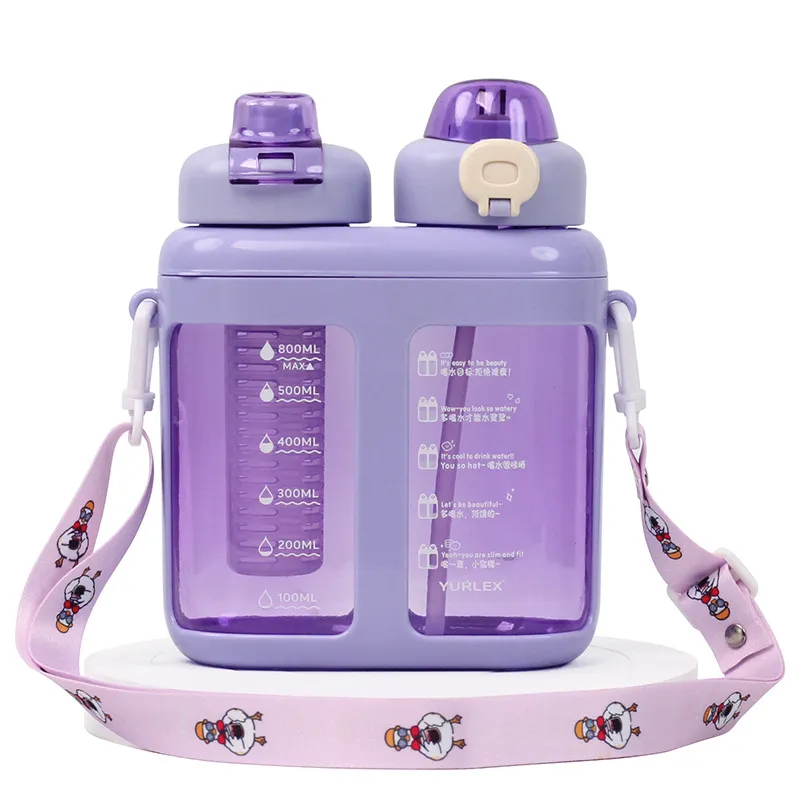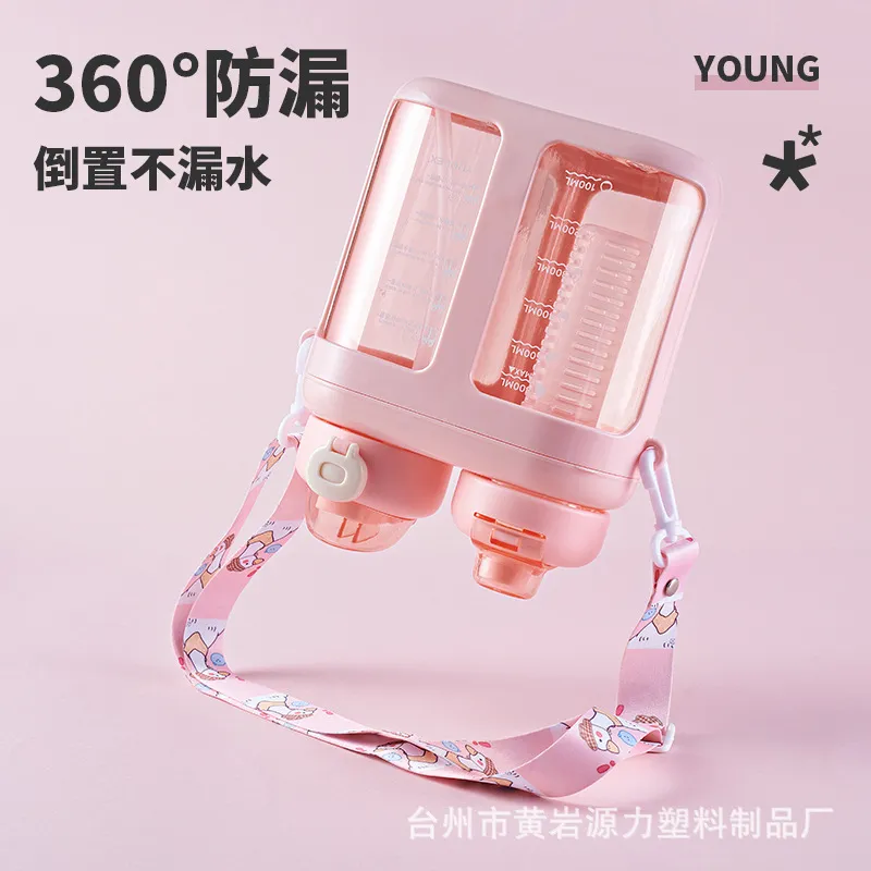 This innovative "Dual-Chamber" bottle is designed to solve the dilemma of choosing between water and juice. Featuring a smart split design, it divides the bottle into two separate liquid compartments, each equipped with its own independent straw. This allows students and children to carry two different beverages (e.g., water on one side, juice or milk on the other) in a single container without mixing them. Perfect for hot summer days, outdoor sports, and school picnics, this durable plastic bottle offers variety and convenience in hydration.