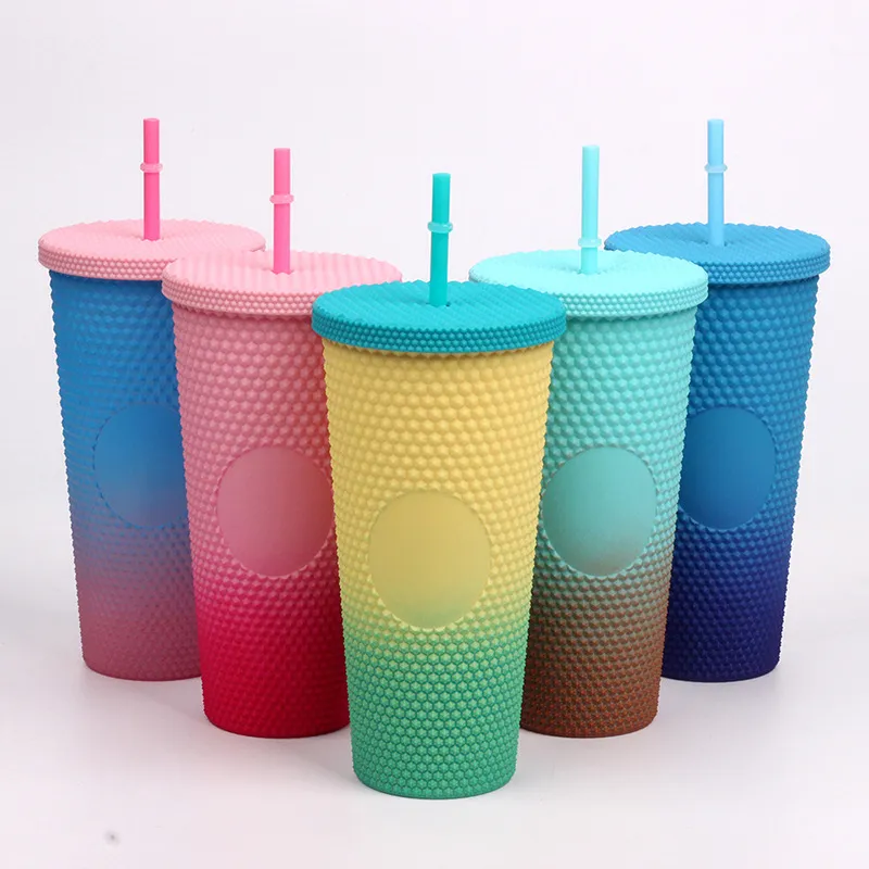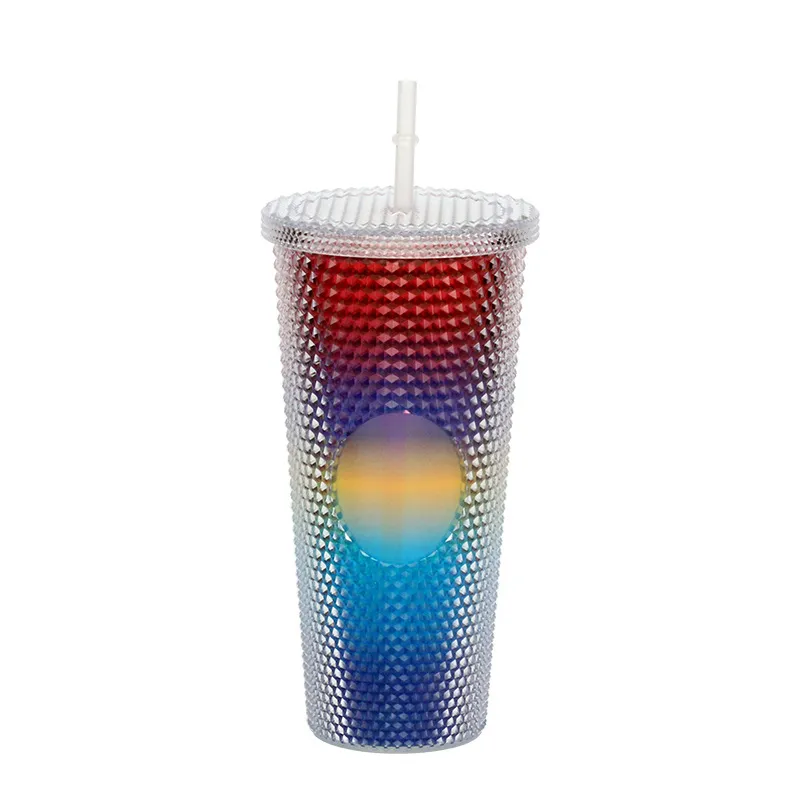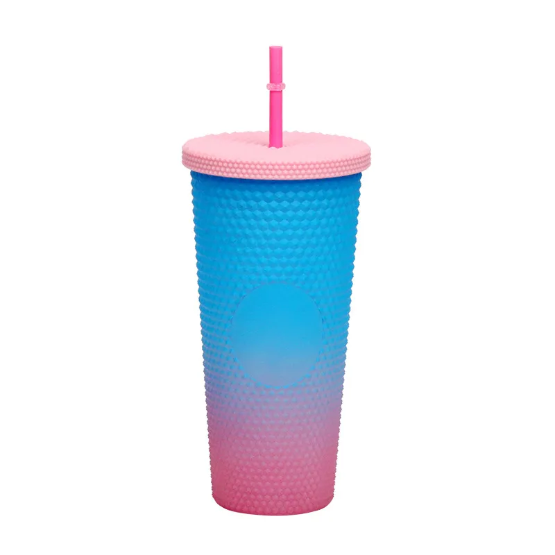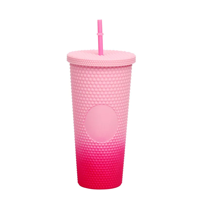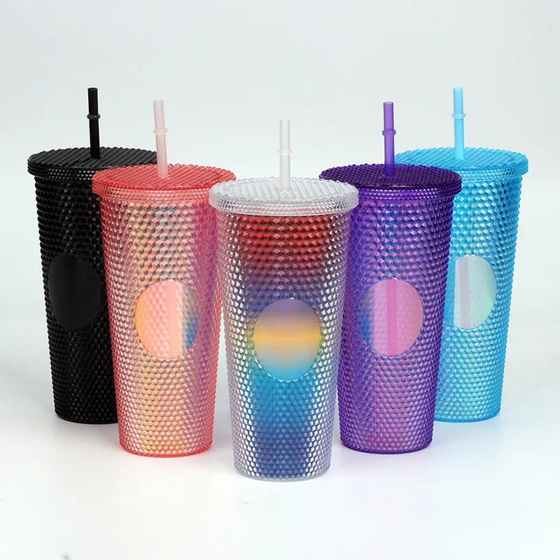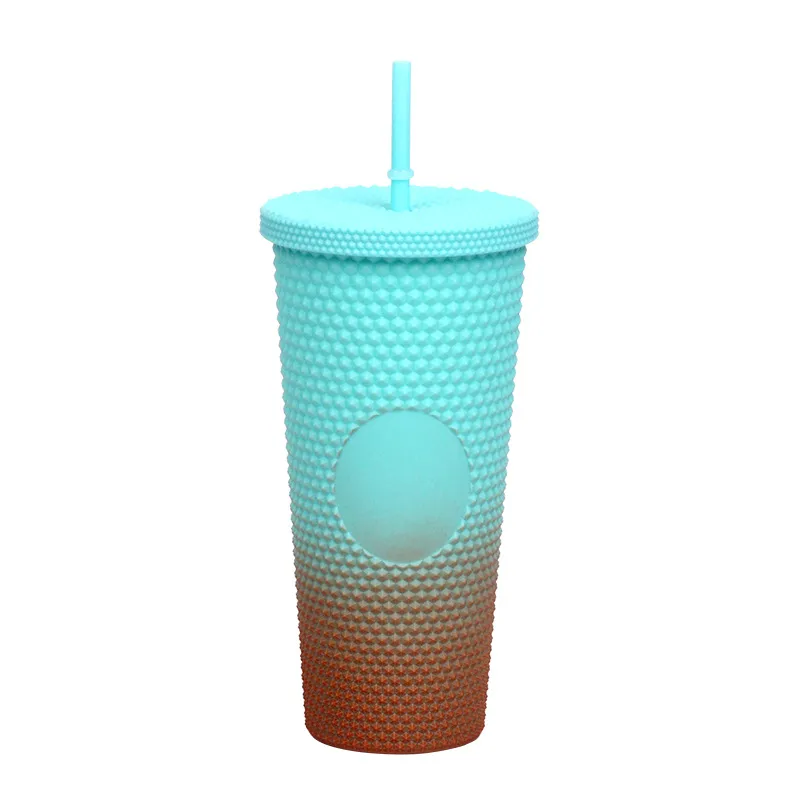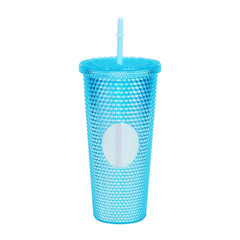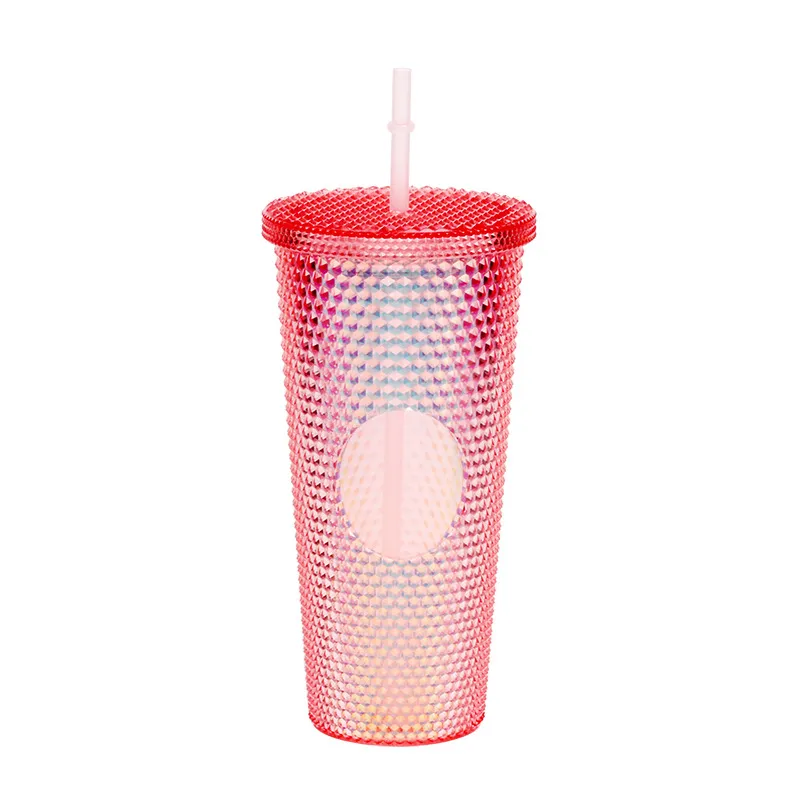 This creative "Durian Cup" (often referred to as a Studded or Diamond Tumbler) is a factory-direct favorite for global retailers. Inspired by trending coffee chain aesthetics, its exterior is covered in a raised, studded grid pattern that reflects light beautifully and provides a stimulating tactile grip (playfully nicknamed the "spiky" or "prickly" cup). Featuring high-quality double-wall insulation, it keeps cold drinks frosty for hours without condensation (sweating) on the outside. With its large capacity and matching reusable straw, it is the ultimate fashion accessory for hydration and social media photos.